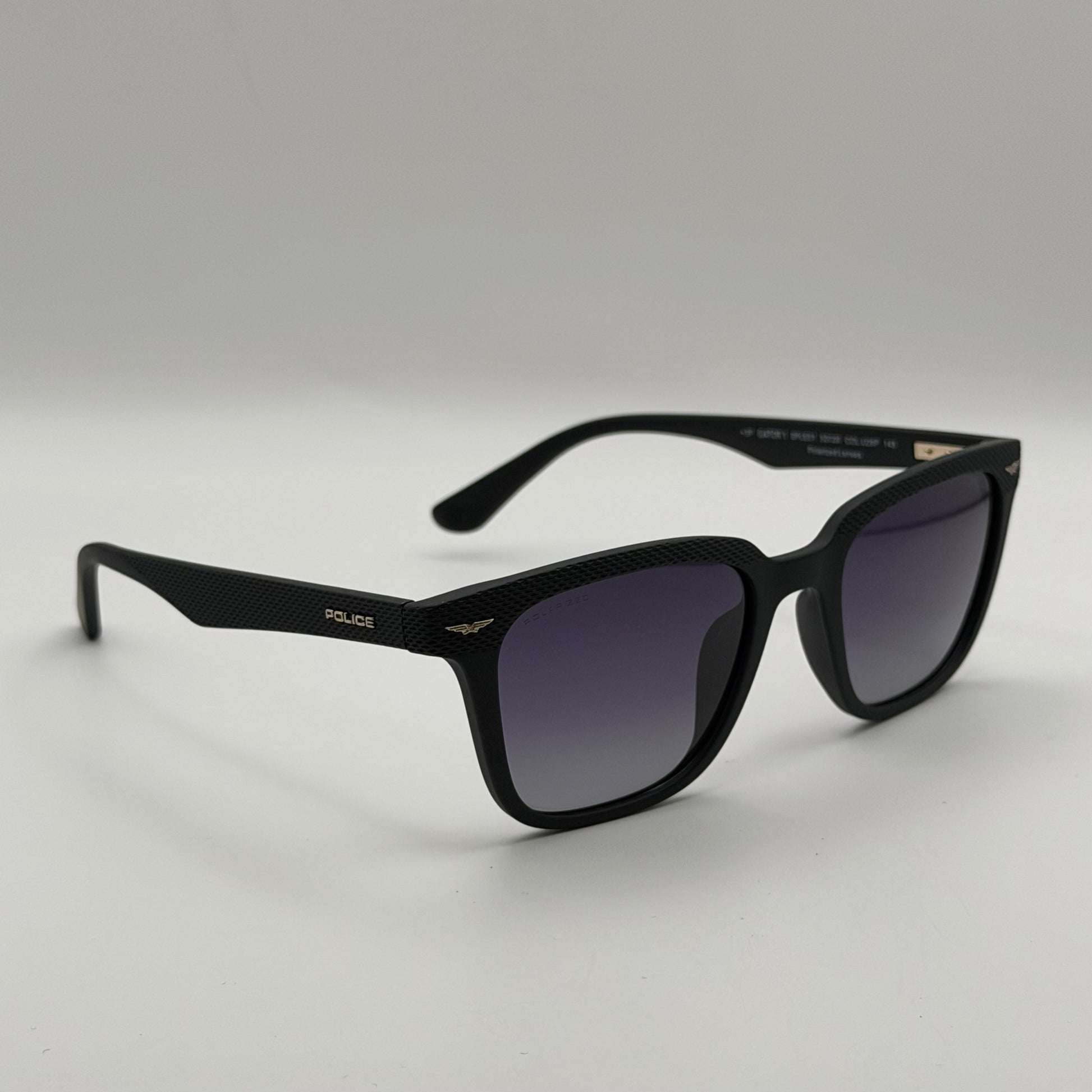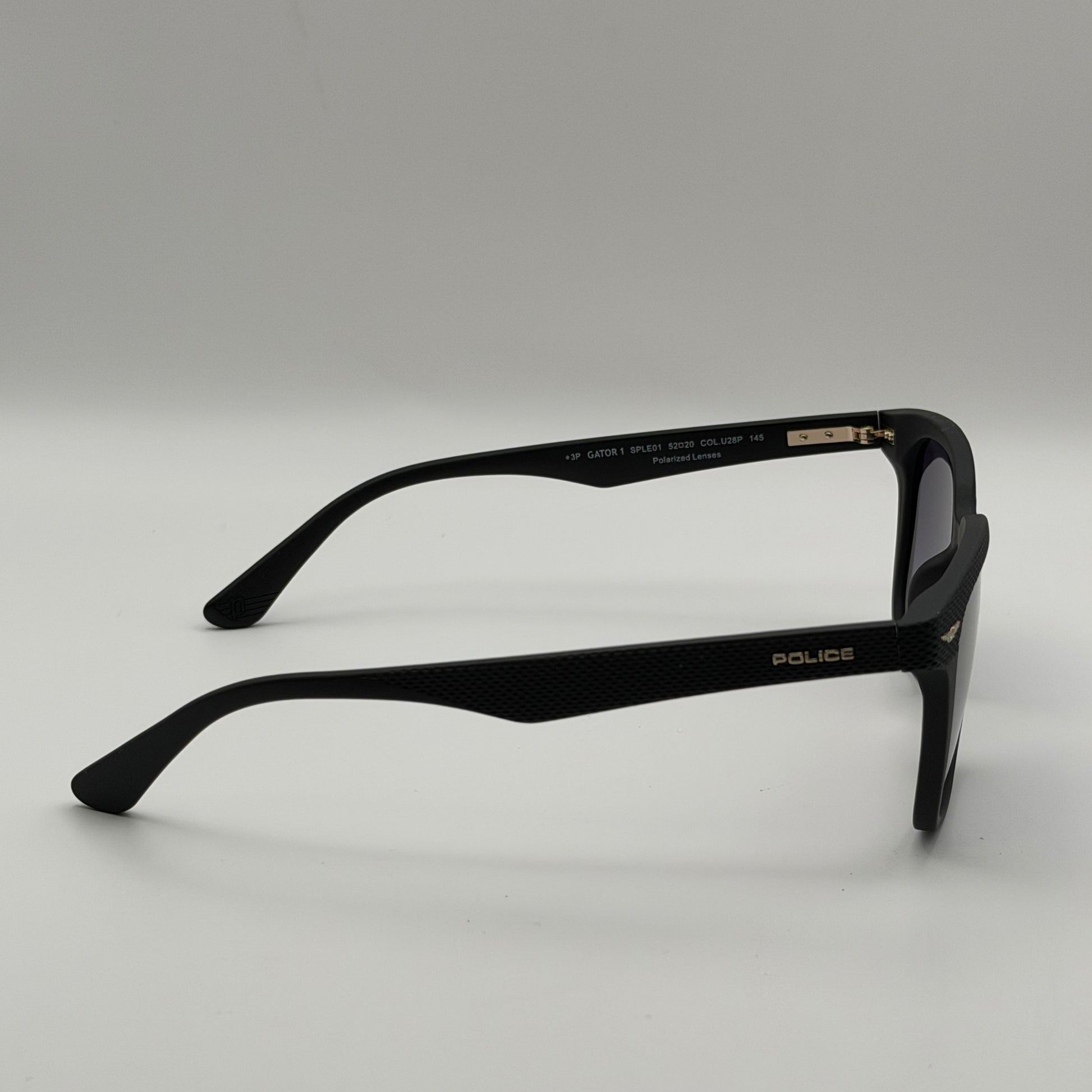 La monture en acétate noir mat bénéficie d’un traitement texturé très distinctif sur la face et les branches, apportant un effet relief à la fois discret et raffiné. Cette finition signature renforce l’attitude “street chic” propre à la collection Gator. Les branches arborent l’iconique logo Police ailé en métal doré, immédiatement reconnaissable et symbole d’assurance, d’énergie et de puissance. L’ensemble est pensé pour offrir à la fois caractère, confort et durabilité.